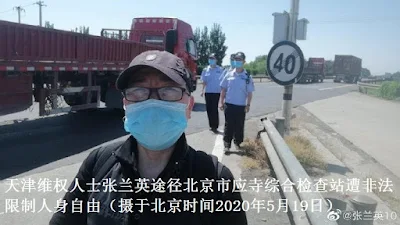 2020年5月19日12时许,天津维权人士张兰英徒步前往北京在北京市通州区永乐店镇应寺村综合检查站遭到北京警方的盘查,因其有上访记录被当地警方非法限制人生自由近四小时,张兰英多次向北京市110指挥中心报警无果。僵持四小时后被天津市南开区学府街派出所民警押返户籍所在地,至今杳无音讯。