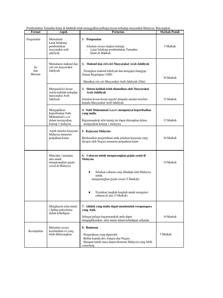 Format Aspek Perincian Markah Penuh Pengenalan Memahami latar 1. 54 Tajuk 11 1 Pembinaan Negara Dan Bangsa Yang Merdeka Tema Tajuk 11 1 Bab 5 Tingkatan 5 Soalan Konsep Perpaduan San Sheet Music Sheet Negara Sejarah Kertas 3 Bab 3 Bab Terengganu Kuala Terengganu Sejarah Kertas 3 Format Spm Soalan Dan Jawapan Bab 5 Kerajaan Islam Di Madinah By Keywai In Types School Work Sejarah And Spm Islam Bab. Contoh Jawapan Sejarah Kertas 3 Bab 5 Tingkatan 4.